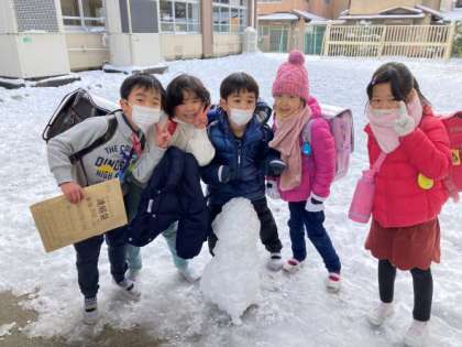 友だちと協力して雪だるまをつくったそうです。すごい!