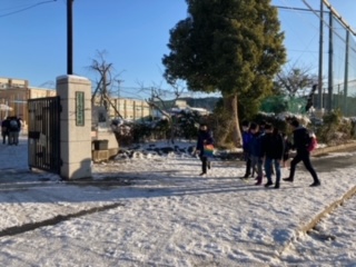 今朝も冷え込みがきつく,昨日の雪が残っているところと氷になっているところがあります。滑らないように気をつけながら登校してきました。