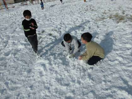 だれが一番大きな雪だるまを作れるか競っている子もいました。