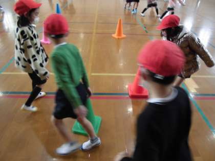 グループで走り方を相談しあい、楽しくかけあしをしていました。