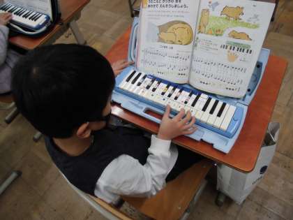 「こぐまの2月」の曲を鍵盤ハーモニカで演奏しました。