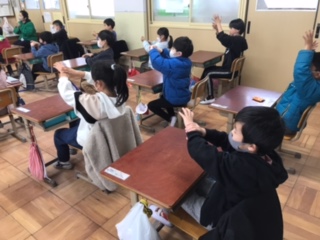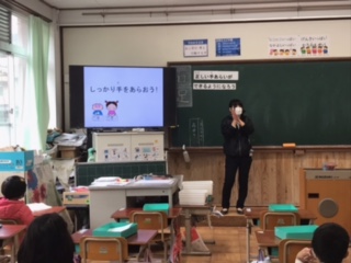 感染予防のため正しい手洗いについて今一度保健室の先生からご指導いただきました。手をきれいに洗わないでご飯を食べるとどうなるのか、どんなことに気をつけて手を洗うと良いかなど考えたり、教えていただいたりしました。最後は手洗いの歌に合わせてみんなで練習しました。早速給食前には、自分たちで歌いながら正しい手洗いを実行していました。続けていけるといいですね。