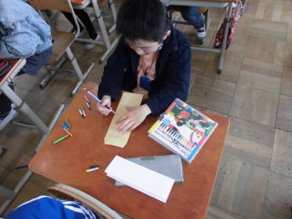お手紙に色を塗り、封筒に絵を描いてにぎやかにしました。