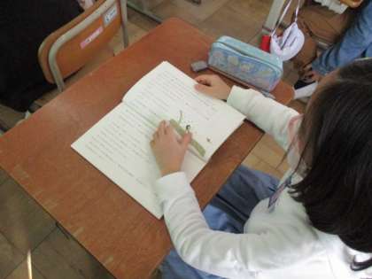 音読するときには、言葉を落としたり読み間違えたりしないよう、指でなぞって読んでいる子もいました。