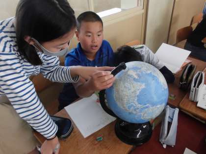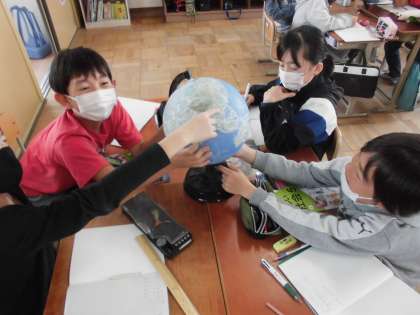 地球儀を使って、日本の場所を調べたり、他の国について調べたりしました。