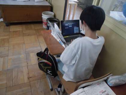 家庭での仕事をタブレットパソコンを使って交流しました。