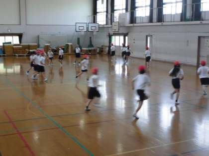 体育科「体ほぐし運動」の学習では、友達の動きを真似ながら動いたり、風船を使ってバレーをしたり、ボールを脚で挟んでジャンプしたり…色々な体の動かし方を楽しみました。「ウサギの真似をして跳びました」「風船のバレーは意外に難しかった!」など、それぞれが体の動かし方を考えながら工夫して取り組むことができました。これからも、安全に気を付けながら皆で楽しく意見を出し合いながら活動していきたいと思います。