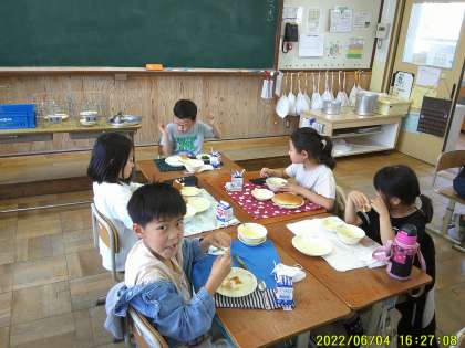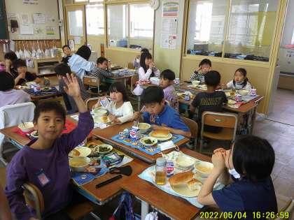 3年生の子どもたちにとっては、初めてのことで、給食中はにぎやかに食べていました。