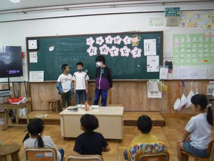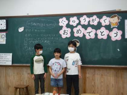 そらいろ学級には、1年生が3人入学してきました。「そらいろでもむかえる会をしょう!」ということでお祝いの会をしました。司会やはじめの言葉・プレゼント・終わりの言葉とみんなで役割を決めて進めていきました。