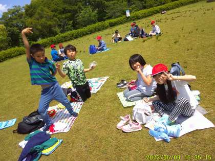 昼食後は、晴天の中梅小路公園で「増え鬼」をして走り回りました。