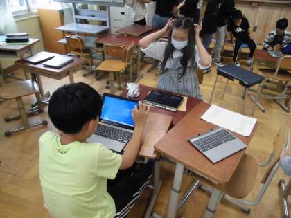 健康係は朝の体操を考えています。