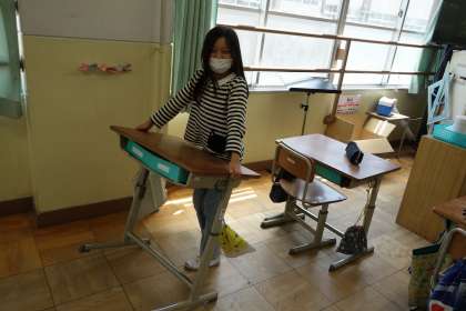 掃除時間はそれぞれの担当場所を責任をもってきれいにしています。気持ちのいい学習環境だと、授業にも集中できますね。