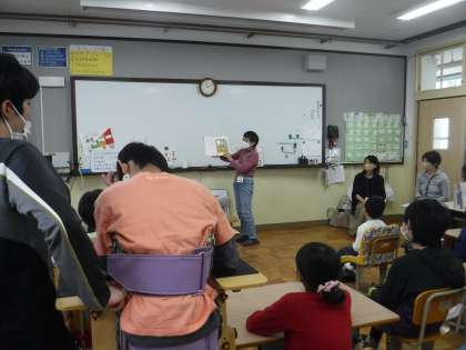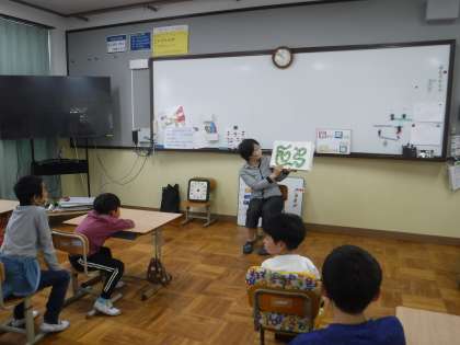 今年度最初の「もこもこデー「」でした。読んでいただいたのは,「たこしんごう・ありえない・いすにすわってたべなさい・わたしとなかよし」とクイズをしていただきました。ありがとうございました!PTAサークル「もこもこ」さん来月もよろしくお願いします。
