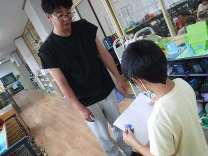 作ったてるてるぼうずをお世話になっている交流学級の先生に持って行きました!「ありがとう!作ったの?」すてきやね!飾っておくわ!」と声をかけてもらいました。