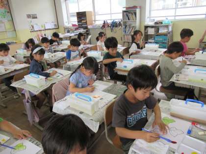 2回目の学習です。今日は、色を混ぜる学習をしました。色の変化に、子どもたちは「おー。」と歓声をあげていました。準備や後片付けは、スムーズにできるようになってきています。