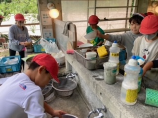 野外炊事が始まりました。