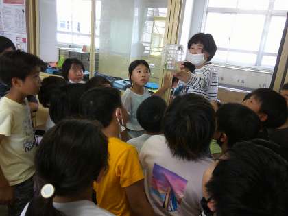 サナギの皮を破って成虫になる瞬間に子どもたちは、まじまじと見たり、喜んだりしていました。