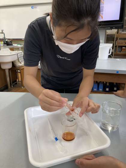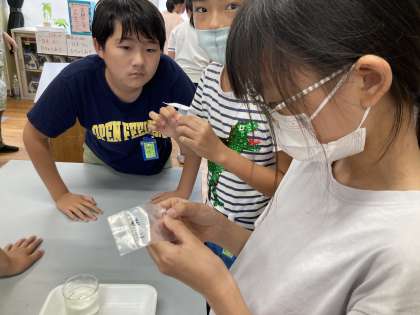 デンプンと唾液の働きの関係を調べる実験をしました。