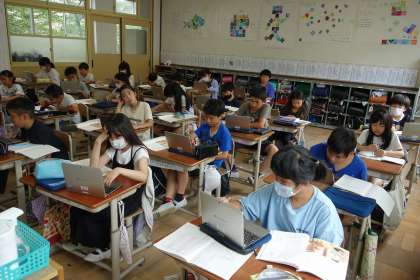 国語では新しい単元「一つの花」に入りました。「一つの花」は、戦時中のお話です。「戦争」というものになじみがない子どもたちですので、まずは時代背景について学習しました。この日は、登場人物のゆみ子が「ひとつだけちょうだい。」と言う理由について、ロイロノートのシンキングツールを用いて考えました。