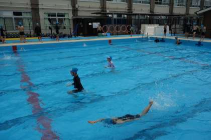 今日は久しぶりの水泳だったので、自分にできる泳ぎ方で気持ちよく泳ぎました。これからまだできない泳ぎ方や距離に挑戦していきたいと思います。