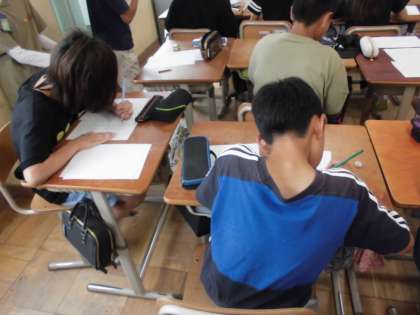 一生懸命見本を見ながら書き写していました。