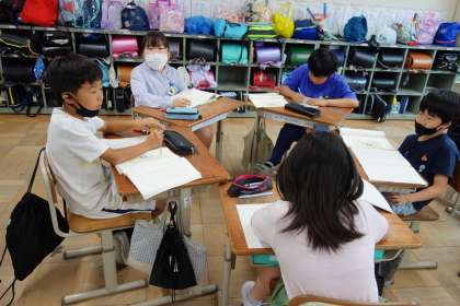 「一つの花」の学習も中盤に差掛かりました。この日は、お話の前半に描かれている戦時中と、最後に描かれている戦後の様子について比較する学習をしました。戦後には「一つだけ」という描写がない理由について、グループでいろいろな意見を交わし合っていました。