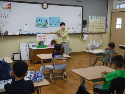 今日は,朝の時間にPTAサークル「もこもこ」さんが来てお話を読んでいただきました。そらいろ1の教室とそらいろ3の教室とに別々にお話を読んでいただきました。そらいろ1では「おかあちゃんがつくったる・しあわせないぬになるには」そらいろ3は「あしあしだーれ?・へんしんトンネル」の楽しいお話でした。来月もよろしくお願いします。
