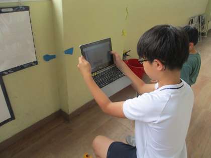 スケートボードに乗ったハムスターや手紙を運んでいる鳥など、画用紙の大きさや場所の工夫をして上手に作っていました♪