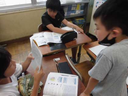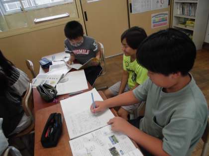 資料の読み取る力がいりますが、自分たちでまとめられるよう取り組めました。