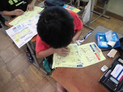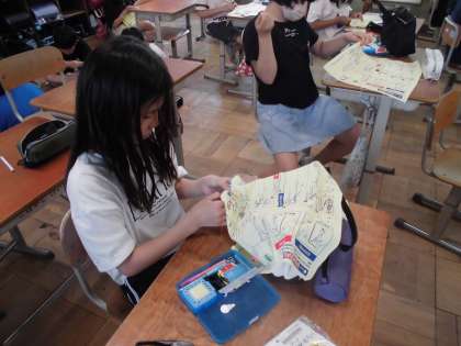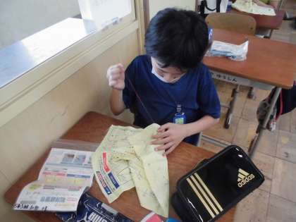 途中、たちばさみを使い、布を裁断する感覚を味わっていました。