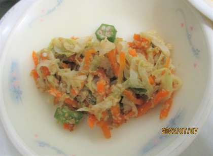 きつね丼(具) オクラとキャベツのごま煮 七夕そうめん でした。