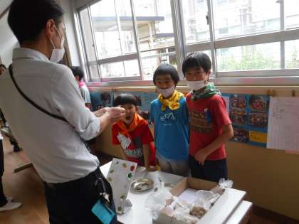 教頭先生も来てくださいました。「1袋50円です。おいしいですよ!」と店員の仕事ををがんばりました!