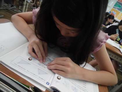 切った三角形がきっちり180°になるように揃えることを集中していました。