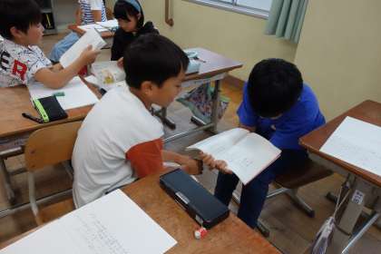 国語で2つのおもしろい詩を学習しました。詩の意味をよく理解すると、読み方が変わってきます。自分の気に入った方の詩の読み方を練習し、友達と読み合いました。