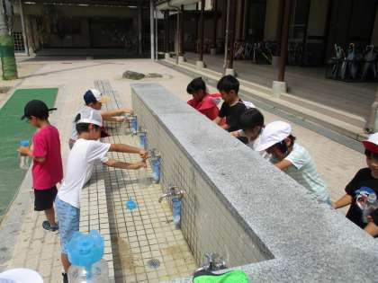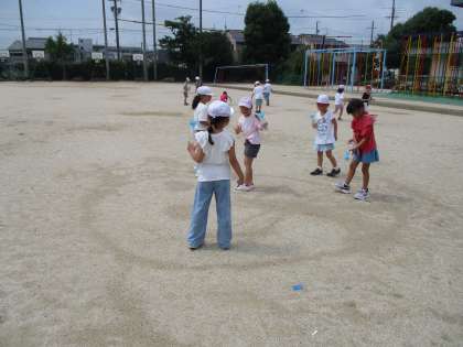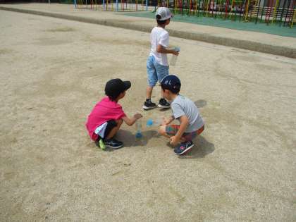 2回目のみずあそびをしました。前回より大きな絵を描いたり、何人かで一緒に絵を描いたりとみずあそびをバージョンアップさせていました。