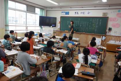 国語では夏についてのイメージを広げ、俳句を作りました。子どもたちからは、6,7,8月について思い起こすことをたくさんあげていました。