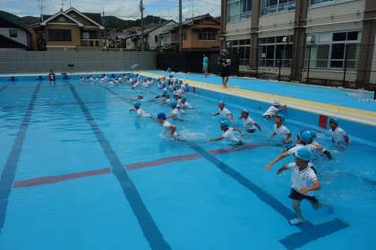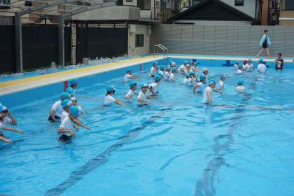 毎年夏になると悲しい水の事故がニュースで流れます。子どもたちが事故に遭わないように、着衣水泳を行い、いざという時の行動の仕方について学びました。