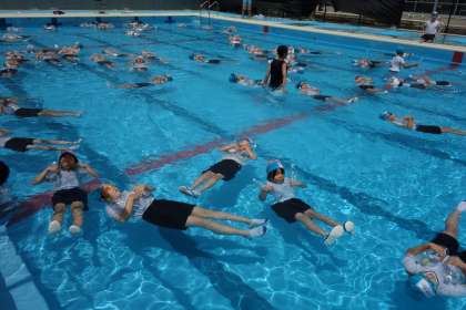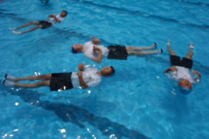 おぼれた時は無理に泳ごうとせず浮くことが大切です。今日はペットボトルを使って浮く練習をしました。夏休み中、子どもたちだけで水辺へ行かないよう、ご家庭でもお話しください。
