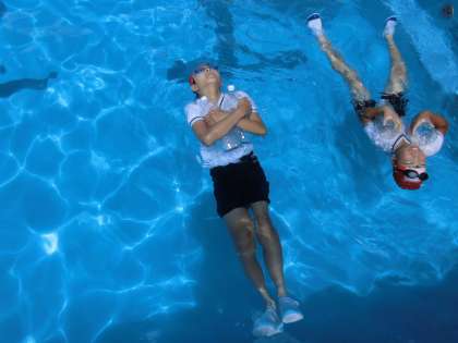 服を着た状態での浮く方法についても学びました。