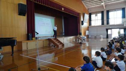 暑さが心配されましたが、朝のうちは心地よい風が吹いていたので、体育館で無事行うことができました。