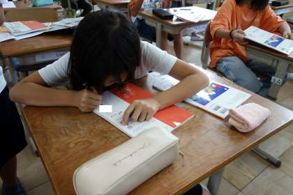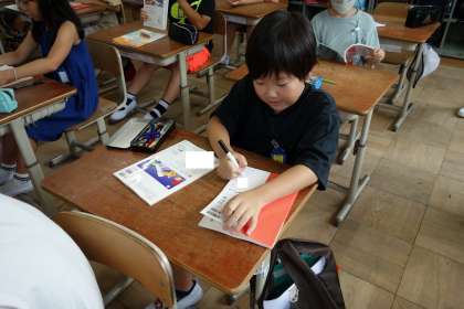 (下)の教科書をもらいました。新しい教科書の内容を想像しながら、心を込めて名前を書きました。この時の気持ちのまま、学習に向かってほしいと思います。