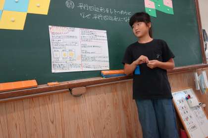 作るときに苦労したところ、工夫したところについて話し、みんなからはたくさんの質問や感想をもらっていました。