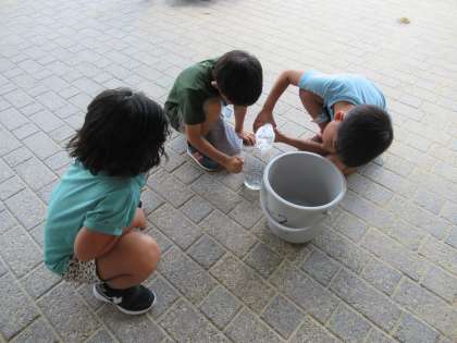 算数の「かさ」の学習をしました。バケツにはどれぐらいの水が入っているのか、リットルますを使って調べました。