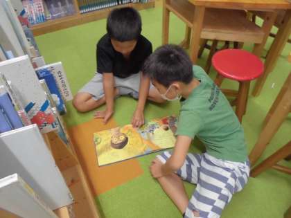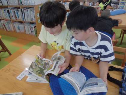 図書の時間は、子どもたちにとって大好きな時間の一つです。借りた本を返して新しい本を借りること、読みたい本を読むことをとても楽しみにしている様子がよく伝わってきました。読みたい本を友達と一緒に読んだり、一人で夢中になって本を読んだりして読書ノートに読んだ本を記録することができました。