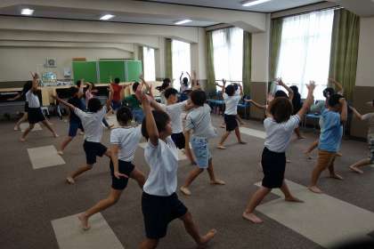 今日は2クラス合同で練習をし、お互いの踊りを見合いました。細かい部分やきめポーズなどのタイミングがどうしても合わず、改めて拍を数えながらゆっくりと確認しました。来週からは運動場で隊形移動の練習に入ります。それまでに踊りを完璧にしたいです。