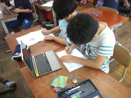 お話の絵の物語を読んでいるときの静寂はすばらしかったです。その中で想像を膨らませ自分がどんな物語を描きたいか一人一人考えました。
