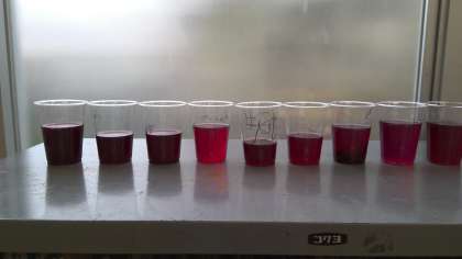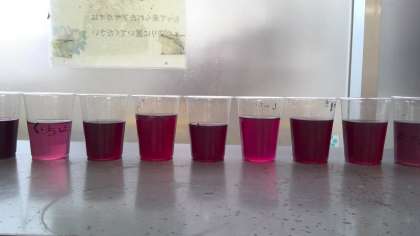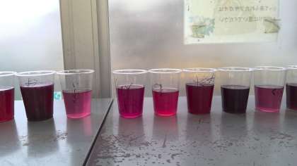半紙にいろみずをつけて模様を作ったり、コップにいろみずを入れて並べてみたりしました。