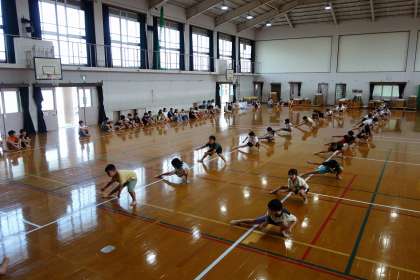 今日は初めて学年でソーランの練習をしました。これまで各クラスで練習をしてきましたが、それぞれのクラスの練習の進み具合を互いに見合うことで刺激を受け合ったようです。