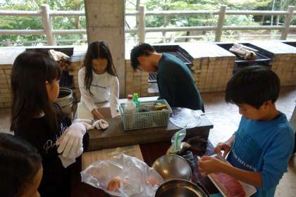 野外炊事では調理実習の経験を生かして、上手に手際よく調理していました。ご飯を炊くことは初めてだったので、少しかたいご飯になった班もありましたが、そこは野外活動のよさです。「おいしい、おいしい!」と言って食べていました。