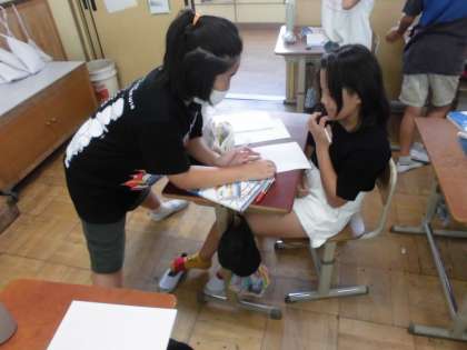 分からないときは、友達と協力していました。